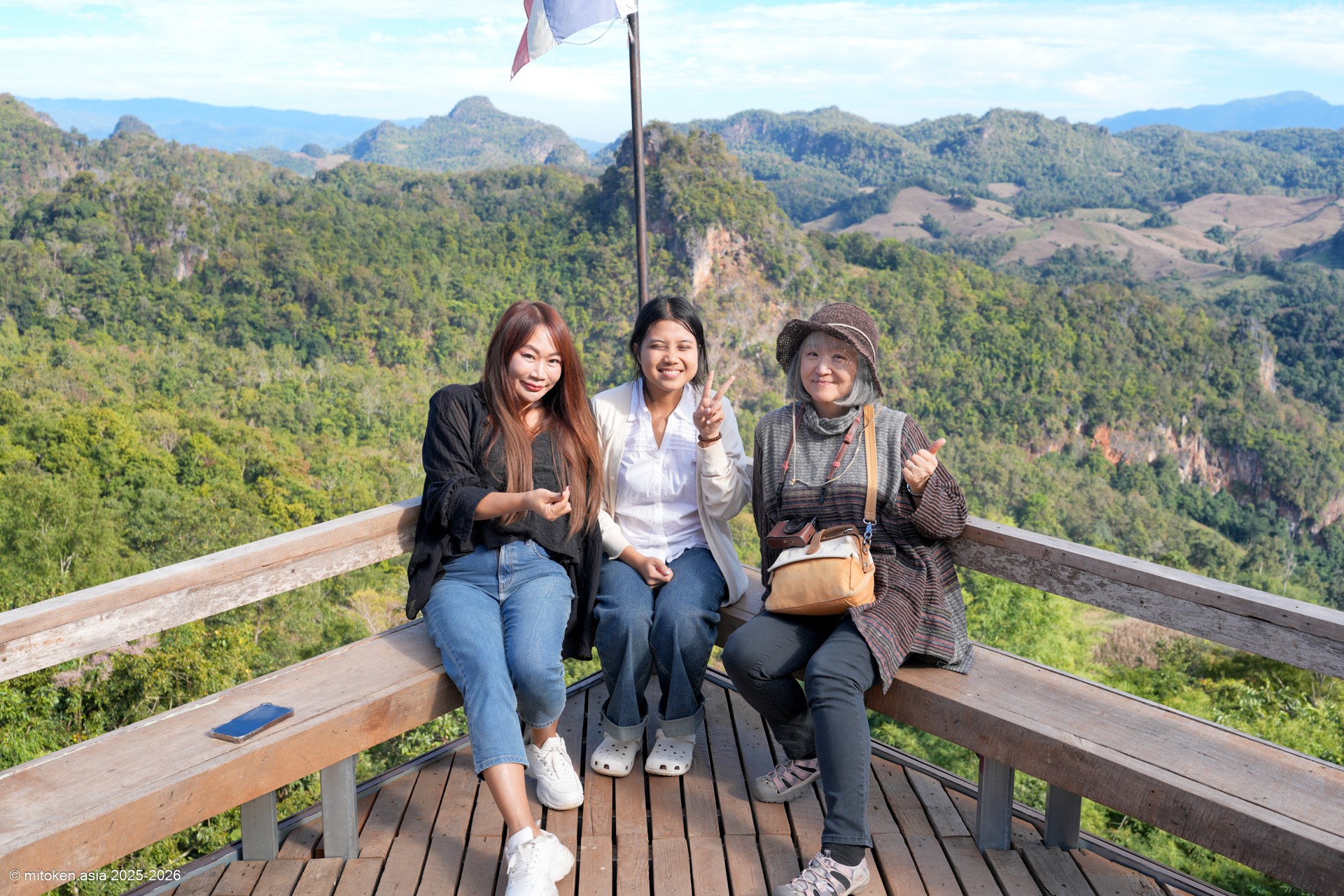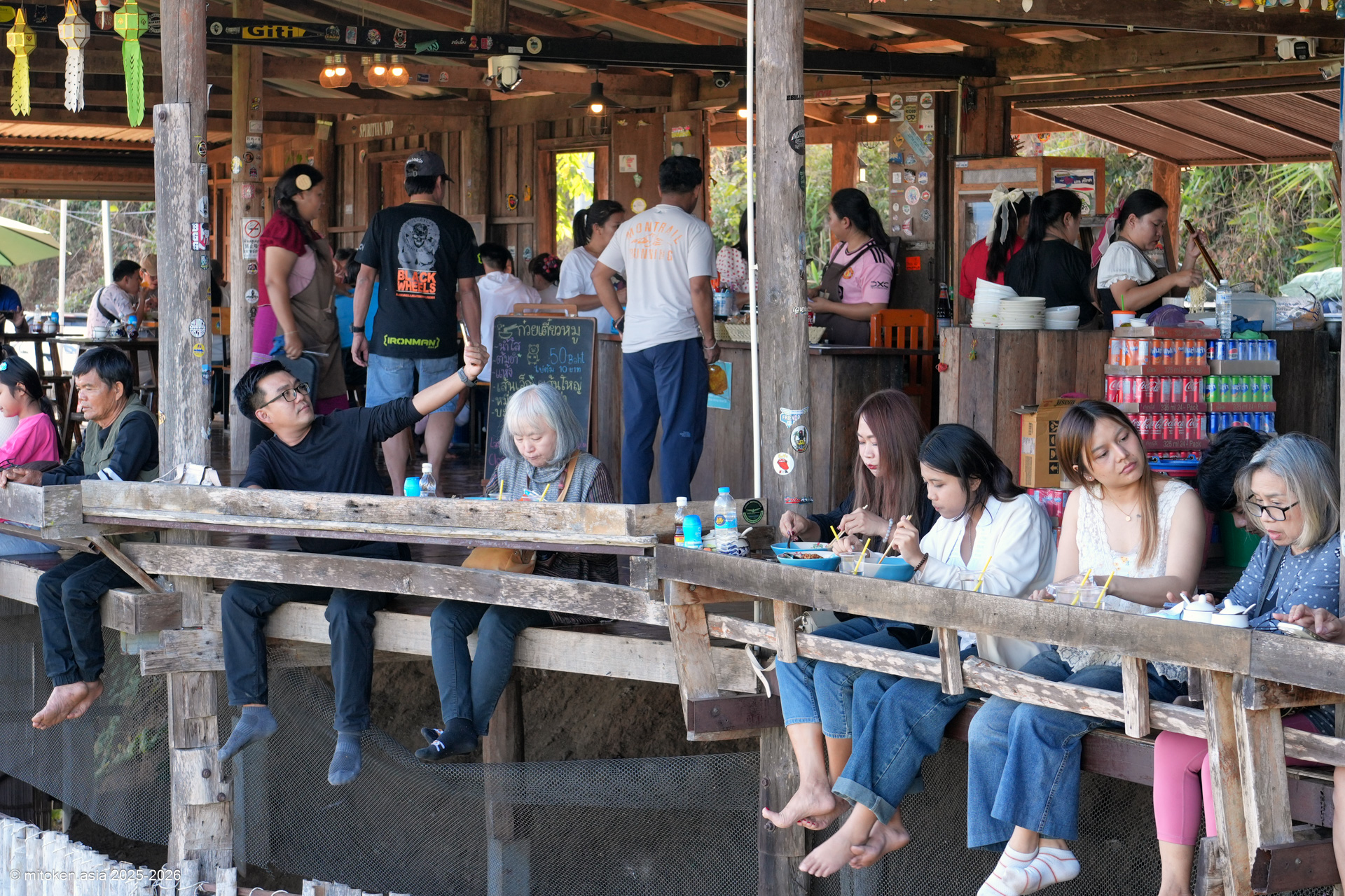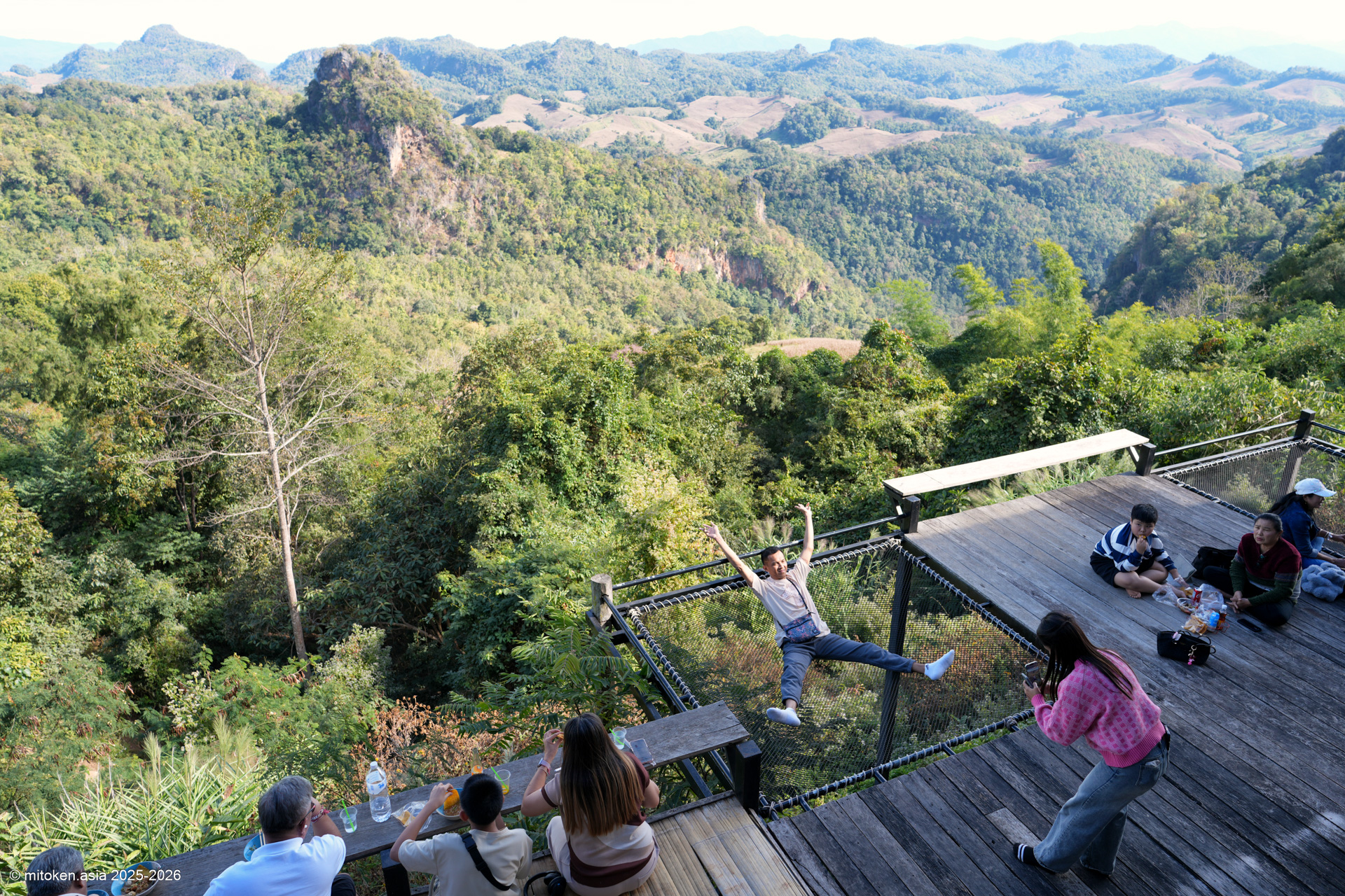 何が人気って、足をぶらぶらと宙に浮かせ、目の前に広がる山々の絶景を見ながら食べられるクイッティアオ屋さんだから。