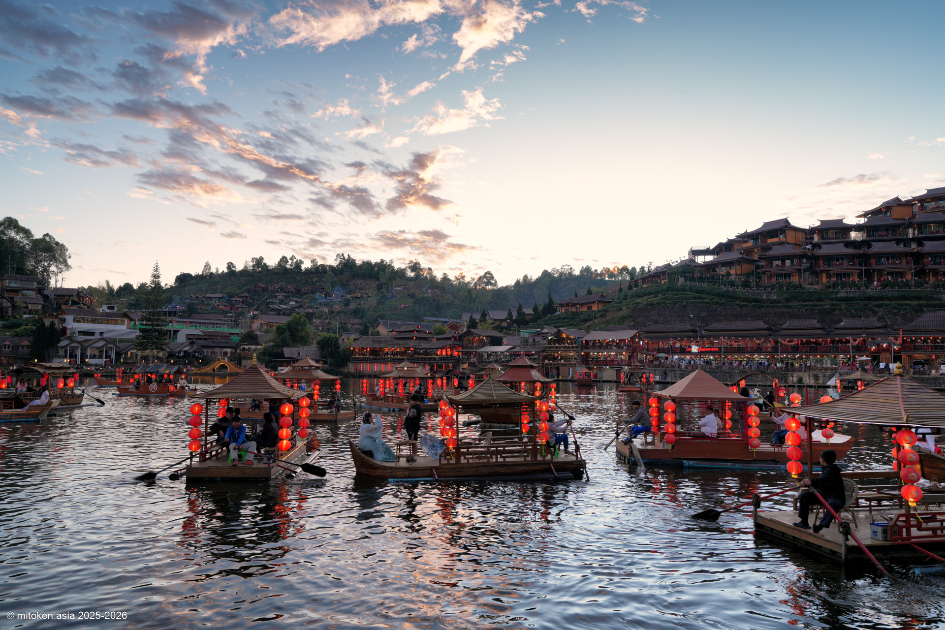 ノスタルジックな街並みの雲南民族の村。タイ人に人気の観光地+年末年始ということもあり、夜もにぎわってました。